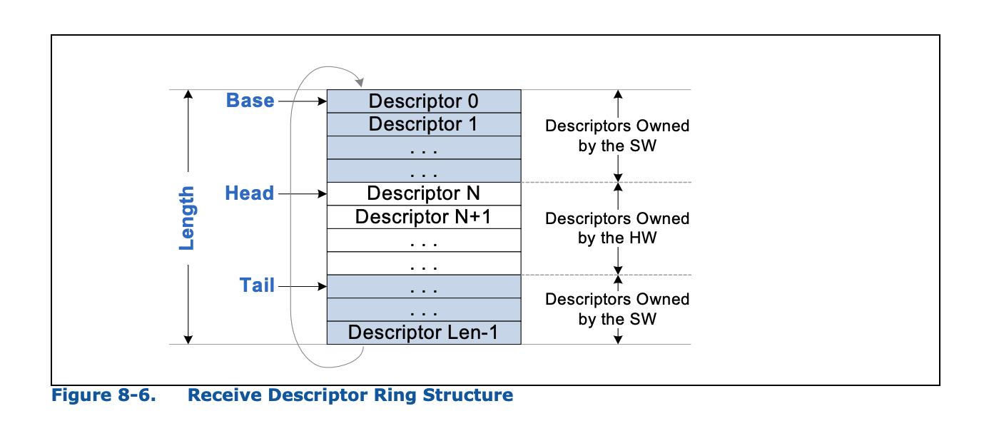 인텔 e710 NIC 공식문서 8.3.3 Lan Receive Queue(Ring) 을 확인해보면