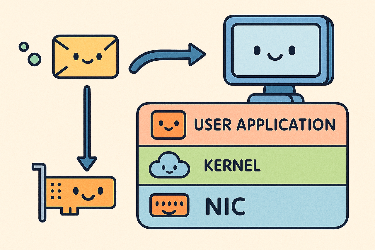 NAPI를 통해 하드웨어 인터럽트의 부담을 줄이며 커널로 효율적으로 전달된 패킷은, 이더넷 프레임에서 IP 패킷으로, 다시 TCP 세그먼트로 단계별로 처리되었습니다. 각 계층에서는 Netfilter 훅을 통해 방화벽 규칙 적용이나 패킷 변형과 같은 유연한 처리가 가능했고, 최종적으로 sk_receive_queue라는 소켓의 수신 버퍼에 sk_buff 형태로 저장되었습니다.