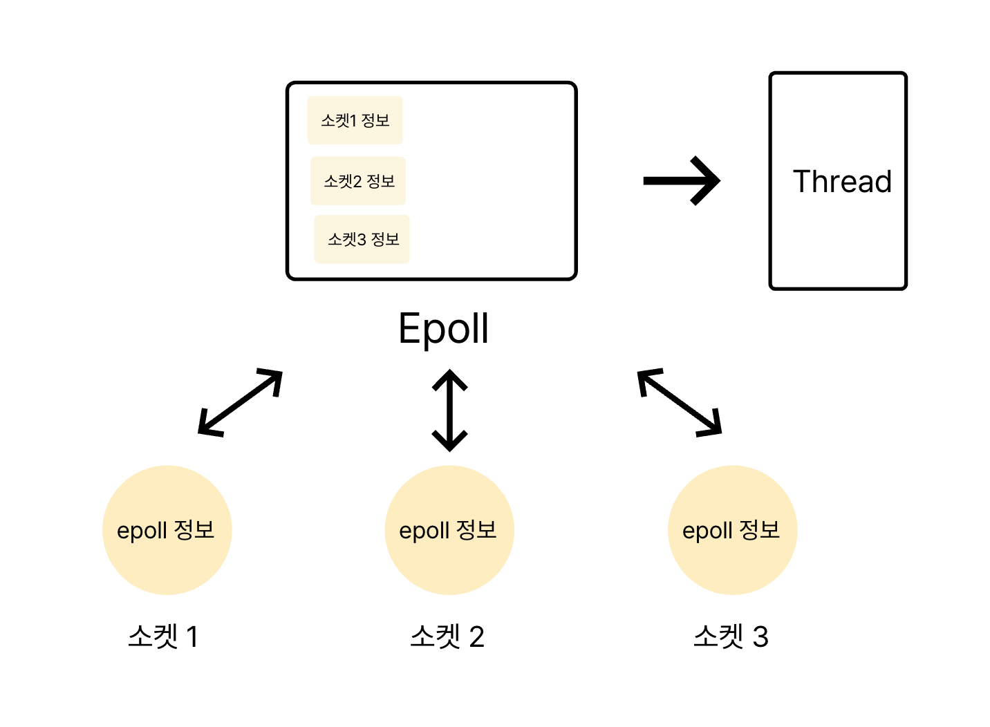- 소켓(Socket)과 epoll 인스턴스(Epoll 구조체): 이 둘은 서로를 참조할 수 있어야 합니다. 소켓에서 이벤트가 발생하면 자신이 어떤