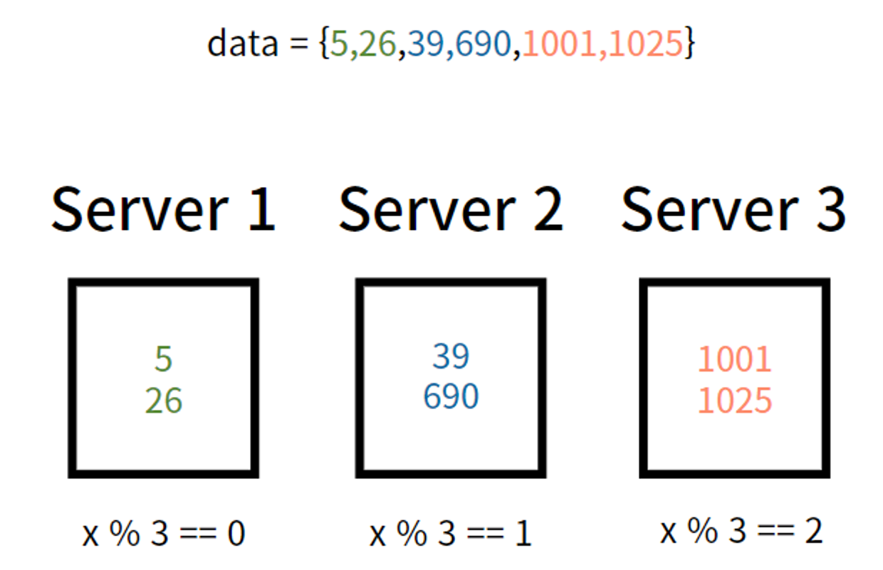 위 그림은 서버가 3개일때, 각 서버에 저장된 모습입니다.